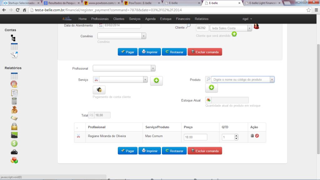 O é uma solução online, que pode ser acessada de qualquer lugar do mundo, através de diversos dispositivos, simplificando a gestão do seu negócio. Controle Clientes, Profissionais, Produtos, Serviços, Comissões, Convênios, Promoções, Estoque, Fluxo de Caixa, e muito mais.
